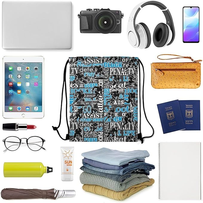 - Generous Storage Capacity: Ample space for clothing, shoes, towels, books, keys, cosmetics, wallet, and more, this hockey drawstring backpack provides abundant storage for all your essentials. Awesome for gym, travel, work, and various activities.