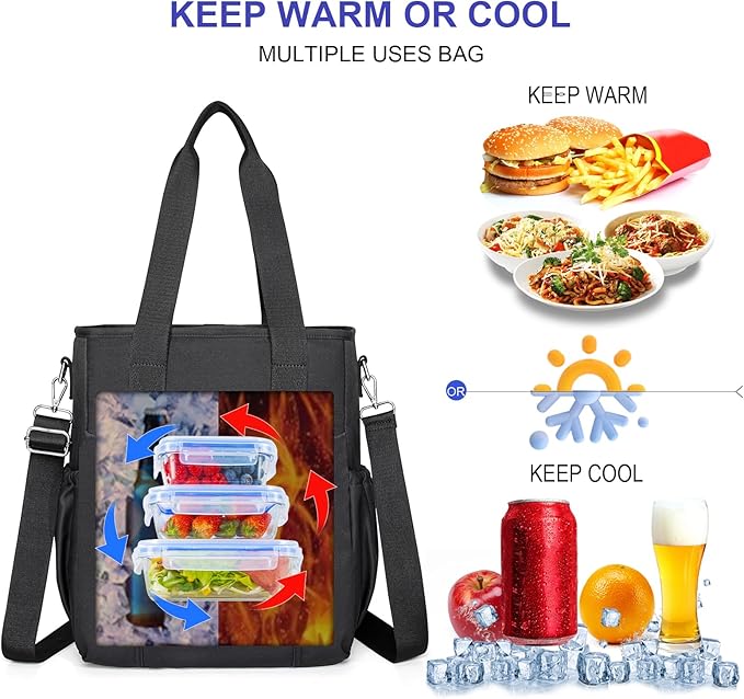 - More convenient to carry: Comfortable and ergonomically designed handles, the lunch bag's handles are padded to prevent hand fatigue even after long hours of carrying, and it is equipped with an adjustable shoulder strap to meet different carrying needs. In addition, the lunch bag is reinforced through multiple processes to ensure that it remains stand upright under long-term use. The zipper is made of high quality NOL zipper, which is smooth and resistant, and not easy to get stuck or broken.