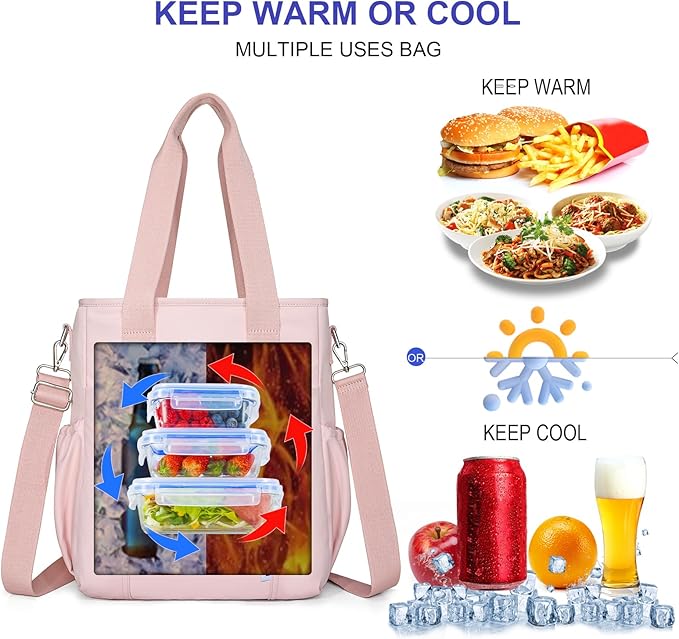 - More convenient to carry: Comfortable and ergonomically designed handles, the lunch bag's handles are padded to prevent hand fatigue even after long hours of carrying, and it is equipped with an adjustable shoulder strap to meet different carrying needs. In addition, the lunch bag is reinforced through multiple processes to ensure that it remains stand upright under long-term use. The zipper is made of high quality NOL zipper, which is smooth and resistant, and not easy to get stuck or broken.
