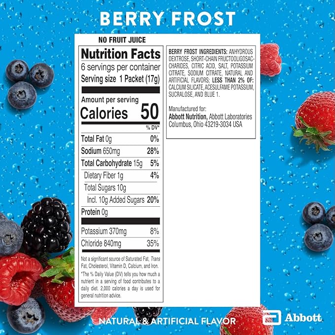 Pedialyte AdvancedCare Plus Electrolyte Powder, Has 33% More Electrolytes and PreActiv Prebiotics, Berry Frost, 100 Powder Packets