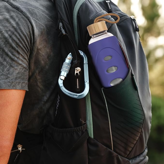 - STYLISH AND PORTABLE : Our sleek design makes the glass water bottle has an ideal travel buddy and elegant appearance. Outer Silicone sleeve offers secure grip and helps protect against breakage.
