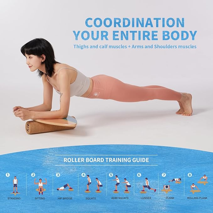 - WON’T SCRATCH FLOORS&EASY-GLIDE WOODEN ROLLER:The balance board surface is smooth and don't worry about damaging the floor.This roller also work great on different types of floor,including wood, carpet, cork, concrete,etc
