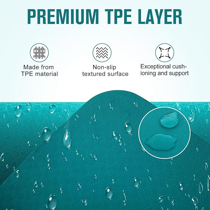 - NON-SLIP & ECO-CONSCIOUS: This thick exercise mat combines natural rubber and recyclable TPE for a durable and eco-friendly practice. Its textured surfaces on both sides ensure a secure grip. And the rubber layer provides exceptional grip even during sweaty sessions.