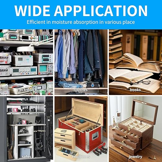 - Versatile Usage: Desiccant packets not will leak or leave stains, easily fits in tight areas, safes, drawers and much more.Also ideal for gun safes, car moisture, food storage, shoes, trucks, boats, storage bins, and any space where you store valuables.