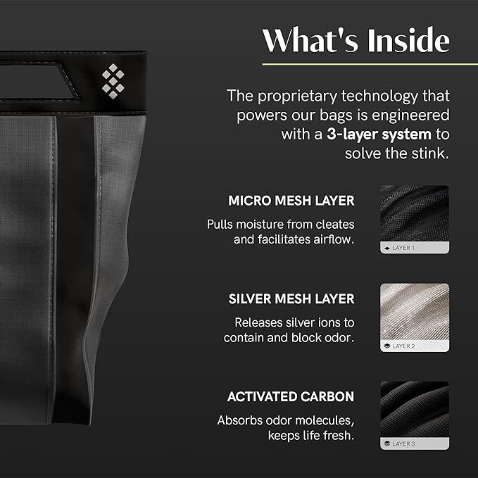 - Patented Smell-Proof Technology: Keep your surroundings fresh by containing your smelly cleats and shoes with Salt Athletic's odor-blocking design. Our athletic shoe bags work great on the go as a shoe bag for gym workouts, track and field accessories and a general travel shoe bag.