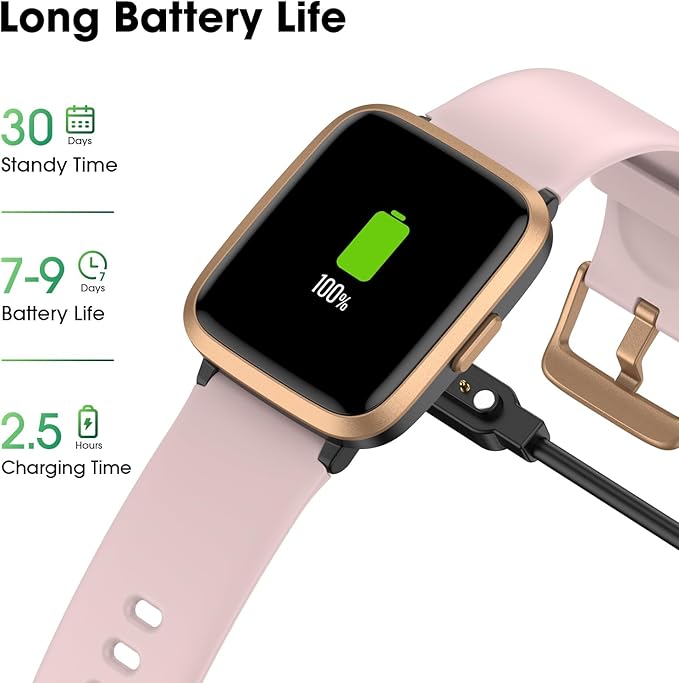 - 【50m Waterproof Fitness Watch & Battery Life】With a 50m waterproof rating, this smartwatch allows you to enjoy water sports without worry. Combining large capacity and low power consumption, a single charge provides up to 7 days of regular use and an impressive standby time of 30 days, ensuring reliability and convenience.