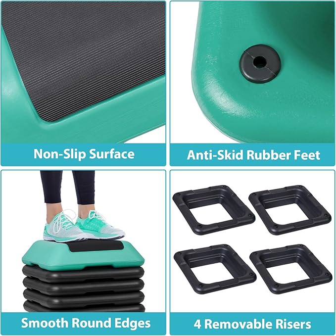 Smartxchoices 16 Inch Adjustable Aerobic Stepper Exercise Workout Step Platform Bench with 4 Risers 4"-6''-8''-10''-12' Height for Home Gym Fitness Training High Step Aerobics Platform