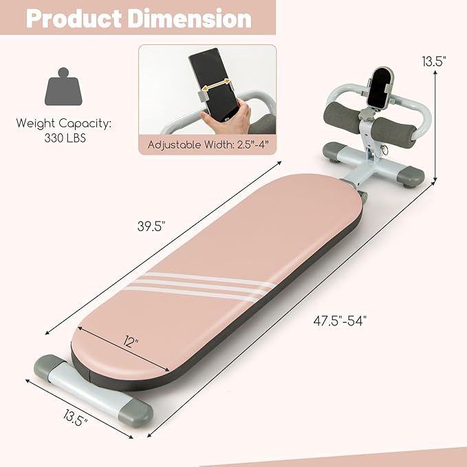 - Adjustable Workout Bench: Featuring 3-gear adjustable angles, this sit-up bench can fit people with different heights. Besides, the length can be adjusted from 120cm-137cm/47.5"-54", which offers you with a customized workout experience.