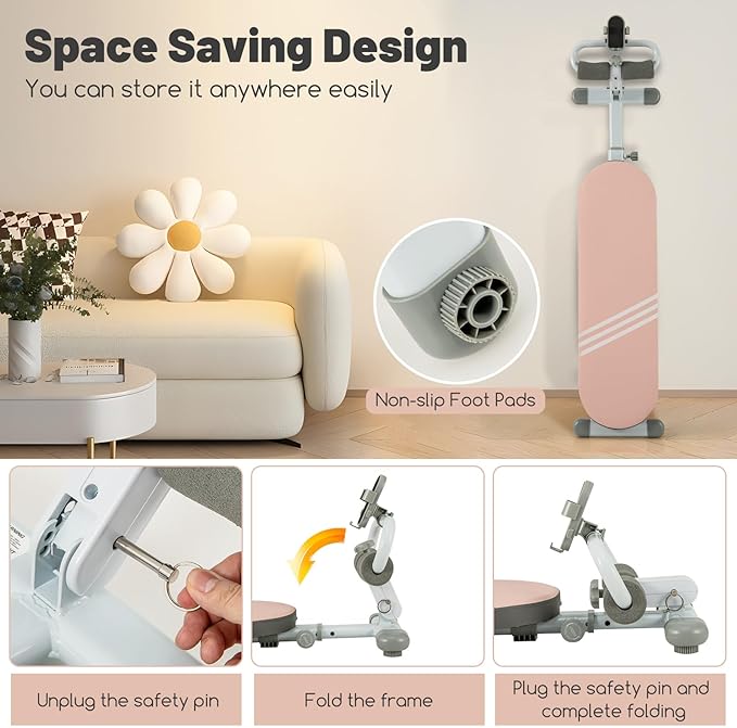 - Easy Folding Design: This fitness bench can be folded into a compact size for space saving. Hence, you can easily unplug the safety pin for effortless folding, and store it under the bed or sofa to save room space.