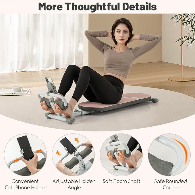 - More Thoughtful Details: This workout bench has a practical cell phone holder, allowing you to free your hands to focus on your workout. Plus, the soft foam shaft, non-slip foot pads, and safe rounded corners offer extra safety.