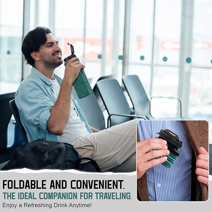 Collapsible Water Bottles 20.6oz Foldable Water Bottle BPA Free Reusable Lightweight LeakProof Travel Silicone Water Bottles for Travel Gym Hiking Camping (Upgrade Dark Green)