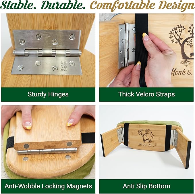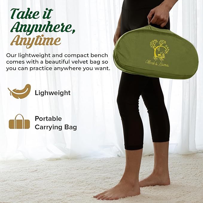 Monk & Llama Meditation Bench - Foldable, Ergonomic, Bamboo Kneeling Stool— Perfect Seiza Bench Meditation Stool Chair for Prayer & Travel - Deeper & Enjoyable Sessions