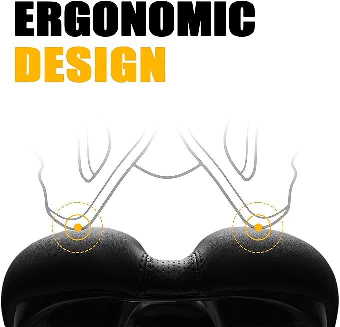 - BREATHABLE HOLLOW DESIGN - VENTILATED FOR COMFORT: The central hollow cutout reduces pressure on sensitive areas while enhancing airflow, keeping you cool and comfortable even on longer rides. Ideal for both men and women seeking ergonomic support.