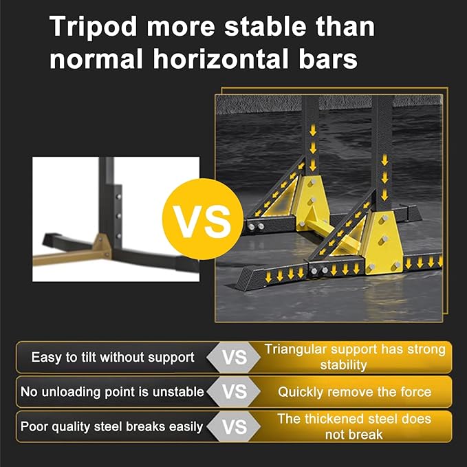 - Heavy-Duty Metal Construction: Built with thickened steel pipes and a reinforced triangular structure, this Free Standing Pull Up Bar supports a maximum load of 400 lbs, ensuring stability and durability for long-term use.