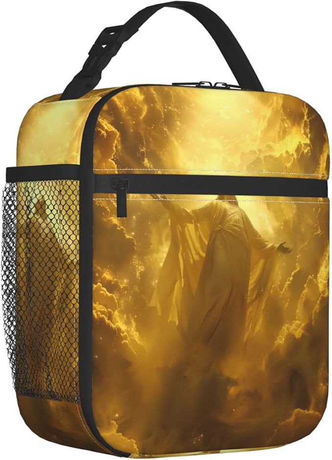 God Print Insulated Lunch Box Gifts for Kids Adults Golden Light and Silhouette of Jesus Design Reusable Portable Lunchbox Cooler Lunchbag for Work Picnic School Travel or Hiking