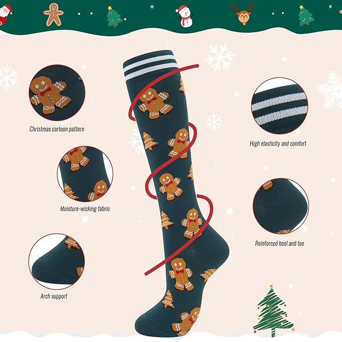 • KNEE HIGH SOCKS Bored with terribly samey socks? Don’t worry. We prepare a wide variety of cute compression socks for women. The colorful compression socks are carefully designed and the pattern design is very distinctive, The toe and heel portions are reinforced for added support and comfort. Just pick your favorite one from these fun compression socks to show your personality and style