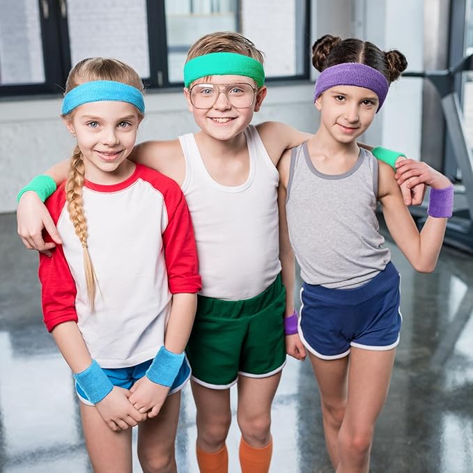 - Neon Sweatbands Wristbands Set: includes 12 pcs of sweatbands for kids for the head and 24 pcs/ 12 pairs of neon wristbands for the wrists; This generous quantity ensures prolonged use for your young ones and allows for sharing among friends and family members too; Ideal for any 80s themed party or event, these neon sweatbands will surely be loved by all