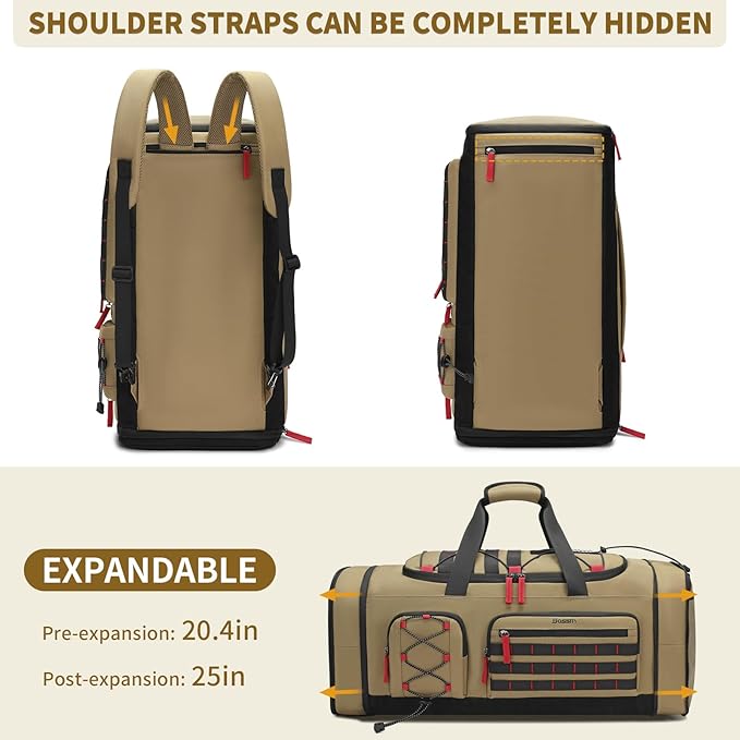 Bosstin Gym Bag for Men & Women,45L Travel Duffle Sports Duffel Bag Gym Weekender Overnight Backpack with Shoe Compartment (Khaki)
