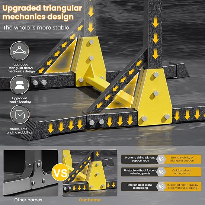 - 【Heavy-Duty Stability & 400 LBS Capacity】Built with thickened steel pipe and reinforced triangular supports, this Pull Up Bar Free Standing delivers unmatched durability for intense strength training, safely supporting up to 800 lbs—perfect for transforming your home gym into a powerhouse.