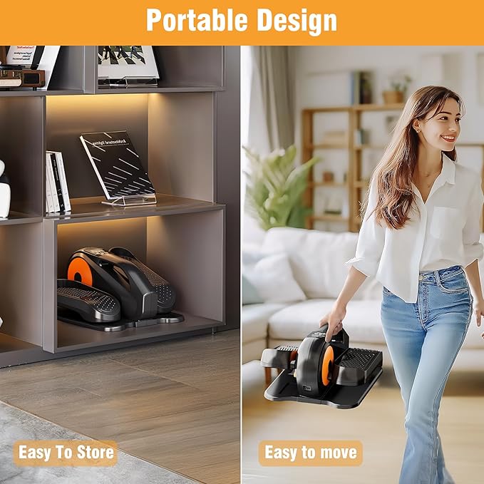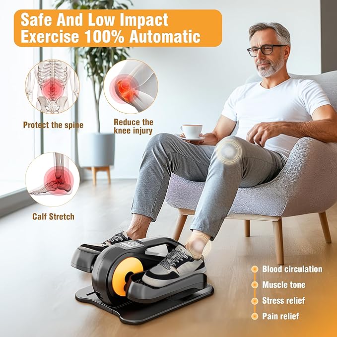 - [Low-Impact & 0 Pressure] The low-intensity elliptical machine under your desk is a great way to get some exercise, especially if you're elderly or have been through leg rehabilitation. It's a wonderful way to burn calories, improve your cardiovascular health, and strengthen your muscles. It also helps your legs adapt and recover quickly! pedal size suits for everyone in the family