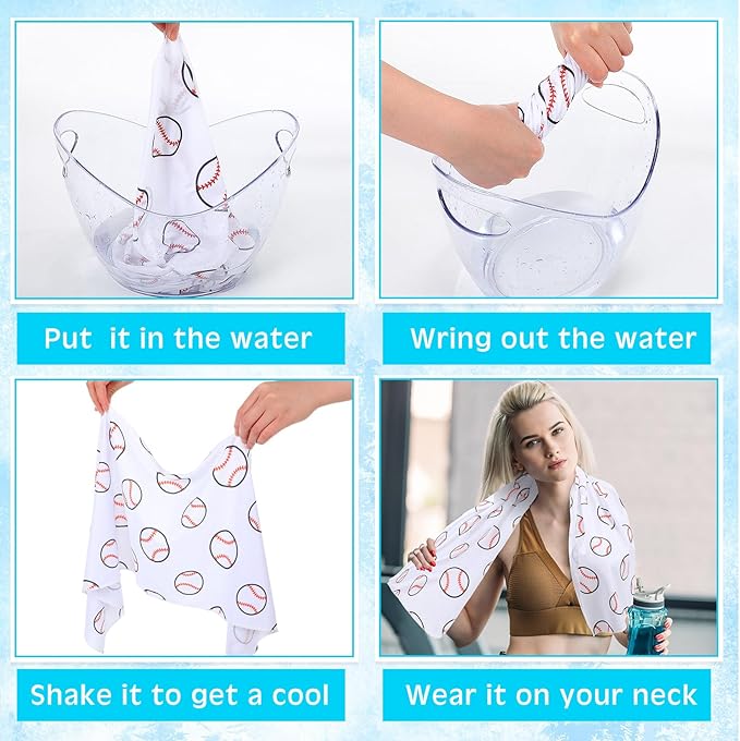 - Generous Package: included in the package are 12 baseball cooling towels for neck and face, ideal for your daily use; Whether for baseball sports or giving gifts, there's enough here for your replacement needs; Practicality and convenience right at your fingertips