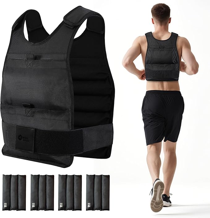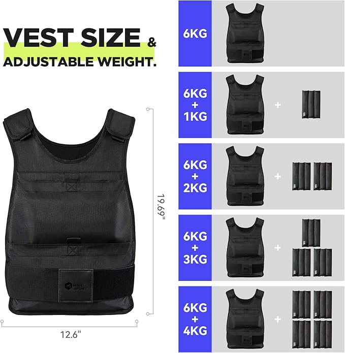 - ADJUSTABLE WEIGHT VEST: This one-size-fits-most exercise vest by M Mike Sport weights in at 13 pounds by itself but reaches up to 22 pounds thanks to the included four 2.2 pound iron sand weight bags, allowing variable low impact resistance that strengthens your core and endurance no matter your exercise routine, suitable for men and women.
