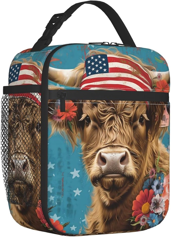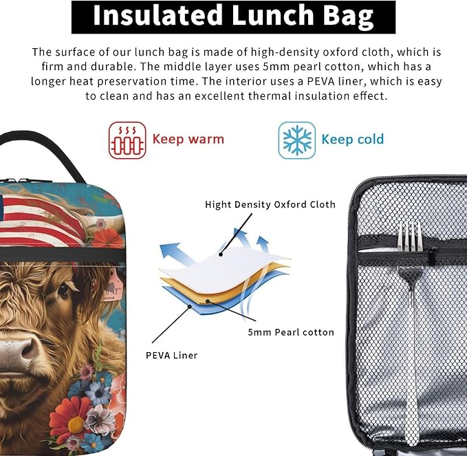Insulated Lunch Box for Women Men, Highland Cow Theme Lunch Box Reusable Portable Lunch Bag Cooler Tote Waterproof Lunch Container for Office Picnic Work Travel