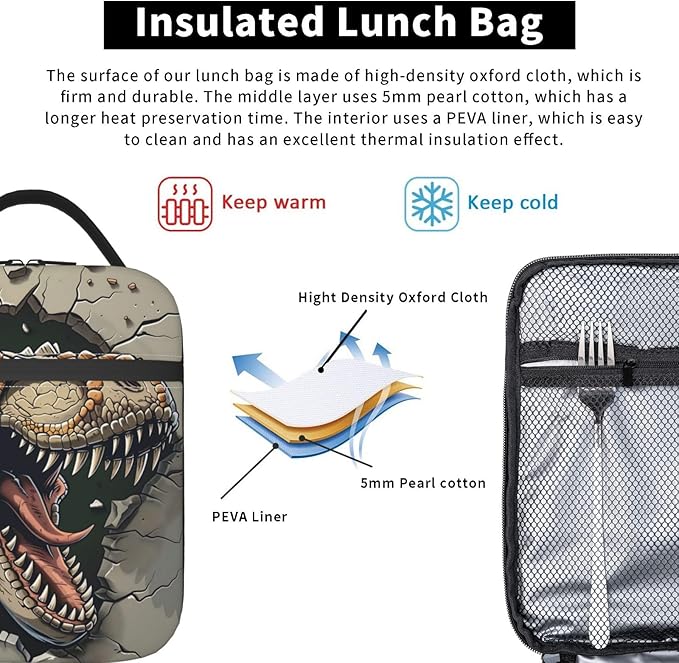 Insulated Lunch Box for Women Men, Dinosaur Theme Lunch Box Reusable Portable Lunch Bag Cooler Tote Waterproof Lunch Container for Office Picnic Work Travel