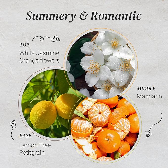 - Jasmine Delight key notes: White jasmine essential oil unfolds its delicate beauty while orange flowers add warmth and elegance to the blend; Crisp mandarin provides uplifting vitality and leafy freshness from Lemon Tree Petitgrain forms the heart, recreating the harmonious and joyful moments amidst nature's splendor