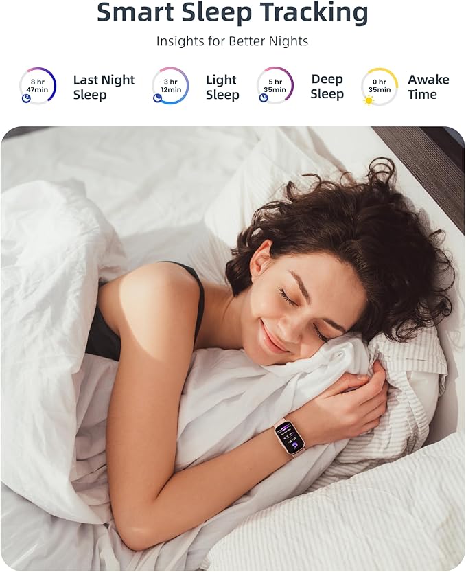 - 【24/7 HEART RATE, BLOOD OXYGEN, AND SLEEP MONITORING】Take charge of your health with this advanced health tracker featuring 24/7 heart rate monitoring and sleep analysis. Monitor your heart rate in real-time, whether resting or exercising. Get insights on deep sleep, light sleep, REM phases, and wake times to wake up refreshed. Easily check your blood oxygen levels (SpO2) to keep your body at its best. Choose this health watch and start your journey to better health!