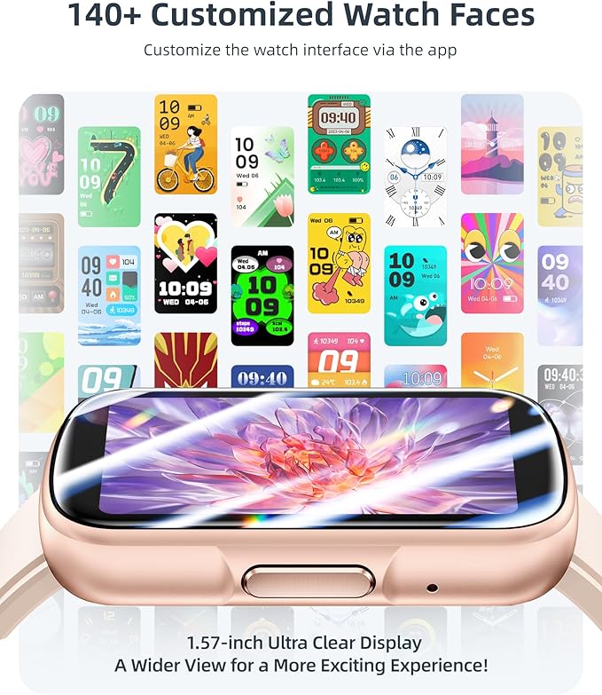 - 【140+ CUSTOMIZABLE WATCH FACES & VERSATILE FEATURES】Discover the potential of this Stylish DIY Customizable Watch! Choose from 140+ watch faces or upload your own photos. Enjoy features like stopwatch, timer, alarms, weather updates, music control, camera remote, calculator, brightness adjustments, and phone finder. This fitness multifunctional watch is your ultimate companion for health and style. Experience advanced technology today—because you deserve more than a fitness tracker!