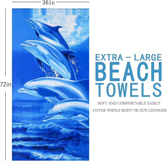 Genovega 2 Packs Oversized Terry Beach Towel 36 x 72 in Soft Extra Large Long Pool Swim Towels Clearance XL Big Travel Blanket Must Haves Essentials Vacation for Adult Blue Dolphins