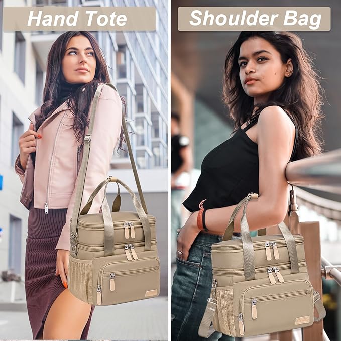 Weitars Insulated Lunch Box for Women Men-Dual Compartment Waterproof Reusable Large Lunch Bag Wide-Open Tote Cooler Bag for Working Picnic Hiking (15L) (Kahki)