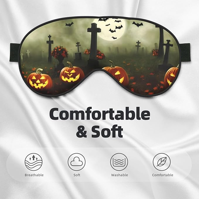 Sleep Eye Mask Halloween Pumpkin Spooky Graveyard at Night Sleep Mask for Women Men Comfortable Eye Mask with Adjustable Strap Soft Eye Cover Blindfold for Travel Yoga Nap Shift Work