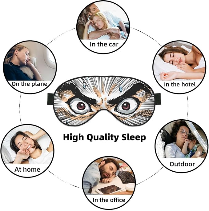 Sleep Eye Mask Cartoon Eyes Sleep Mask for Women Men Comfortable Eye Mask with Adjustable Strap Soft Eye Cover Blindfold for Travel Yoga Nap Shift Work