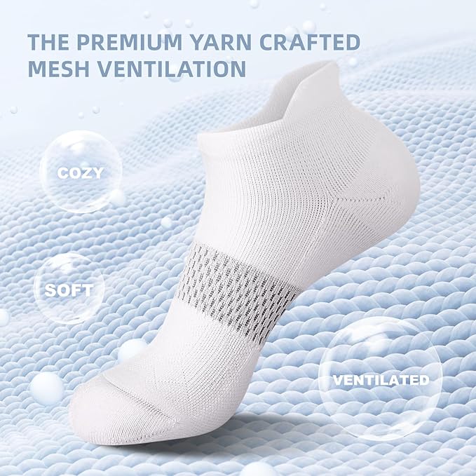 - 【Mesh Design & Breathable】: The athletic socks are mainly made of combed cotton, which is super soft and skin-friendly, can quickly absorb most of moisture and release sweat. The premium yarn crafted mesh ventilation can release heat and keep you feet cool and dry the whole days