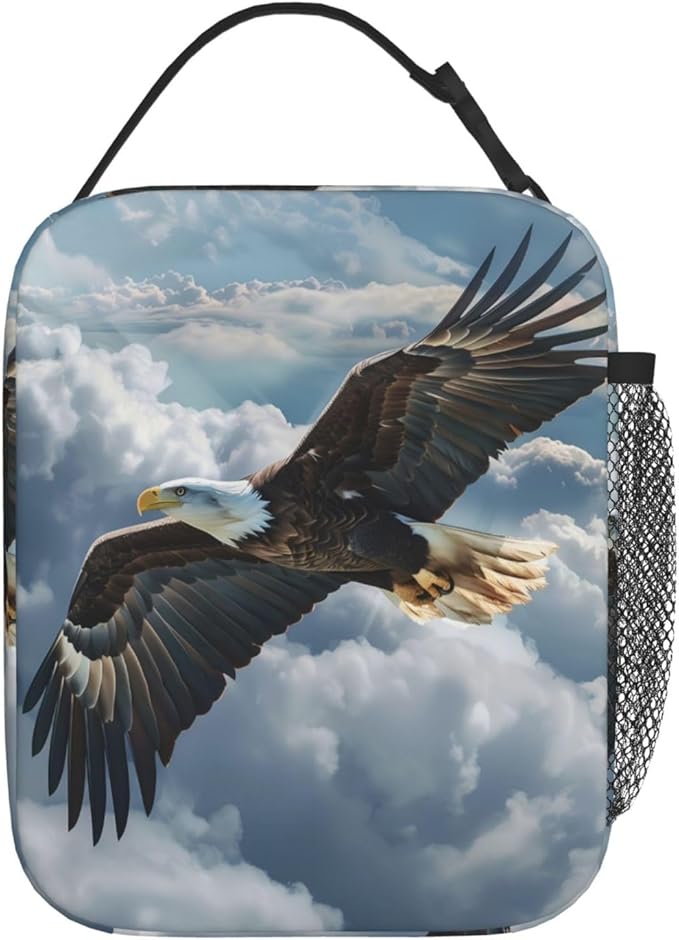 Eagle Polyester Lunch Box for Kids Teen,Soaring Bird Reusable Thermal Lunch Bag for Adult Women,Cool Insulated Tote Cooler Bags for School, Work, Picnic,Travel,Realistic Sky Design