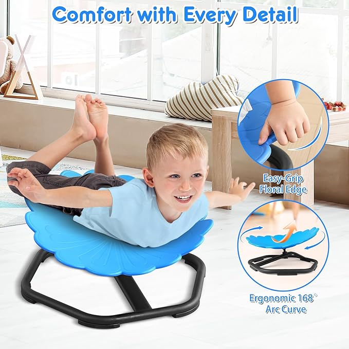 - 【360°Ultra-Smooth Rotation】Upgraded with high-precision ball bearing and torque structure that conforms to inertial dynamics, this spinning seat allowing kids to fully control the rotation easier and smoother. Let your child sets the pace–spinning slowly relaxes; spinning quickly develops balance.