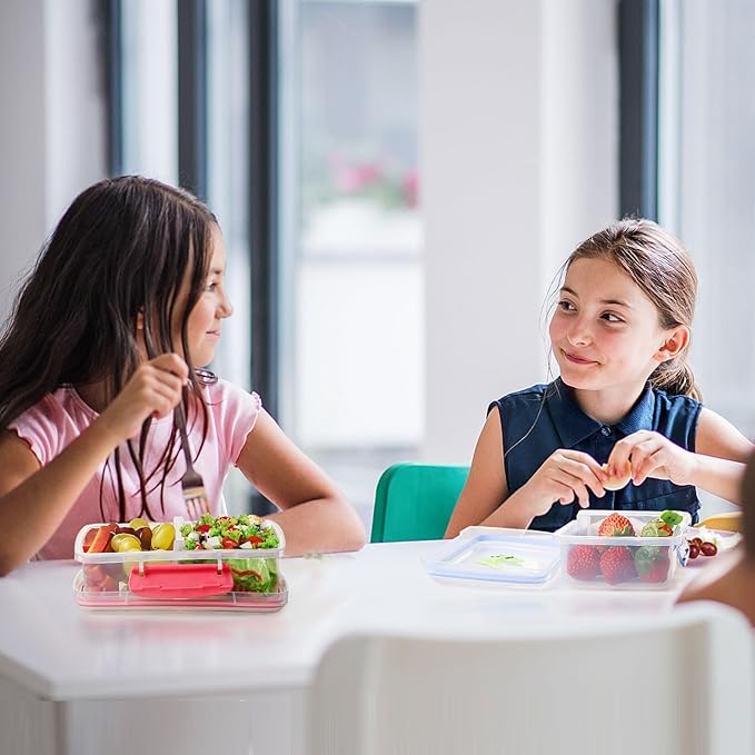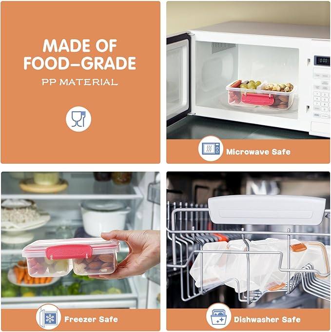 - KEEP YOUR FOOD SEPARATE - This 4 pack of plastic snack containers with lids and 2 compartments will keep your and snacks organized. Perfect for kids' lunch boxes, travel, or daycare, they are reusable for easy storage,and perfect for meal prep and travel.