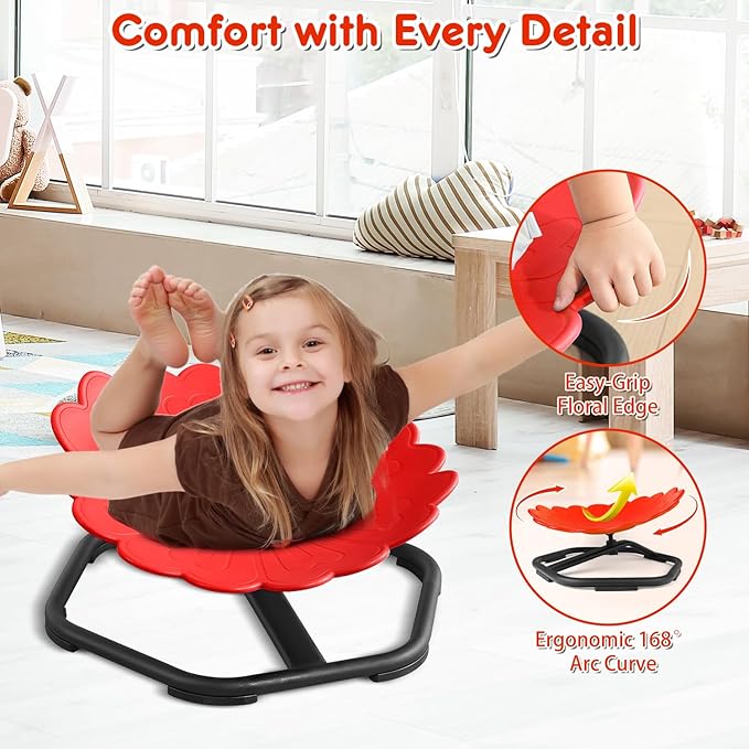 Flower Swivel Chair for Kids, 360° Spinning Seat, Autism Sensory Spin Chair, Toddler Sit and Spin Wobble Seat, ADHD Toy Chairs, Play Equipment Relief Motion Sickness for Boys Girls (Red)