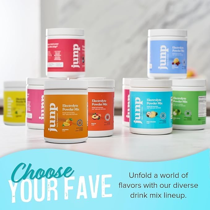 - JUNP: MAKE WATER WORK HARDER -- Junp powder electrolyte mix boosts water with natural salty electrolytes and refreshing fruit-infused flavor to keep you hydrated and energized all day, replenishing the essential vitamins and minerals your body loses through sweat.