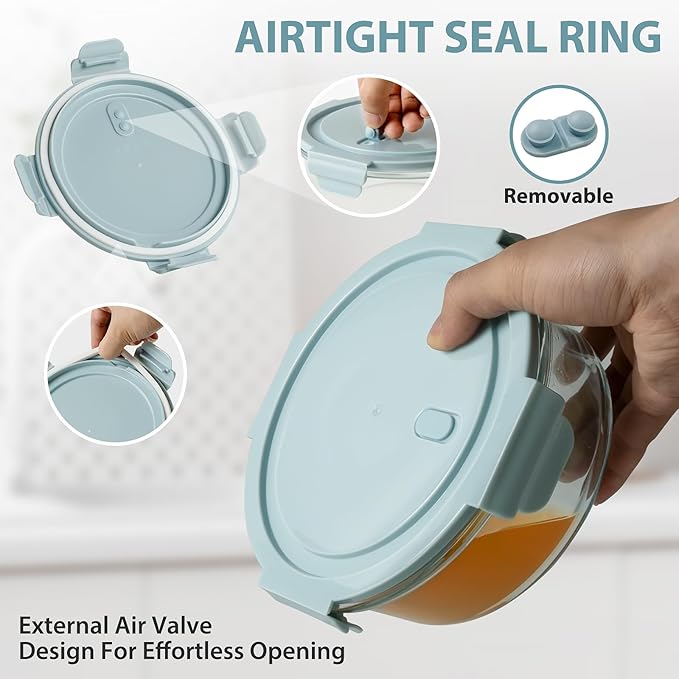 - LEAKPROOF EASY OPENING LIDS: These food storage containers feature airtight lids to prevent leaks and keep fresh with 4 locking tabs and seal ring that are BPA-free, the removable air valve could help opening effortless. Save food for tomorrow or warm today's lunch with less worries.