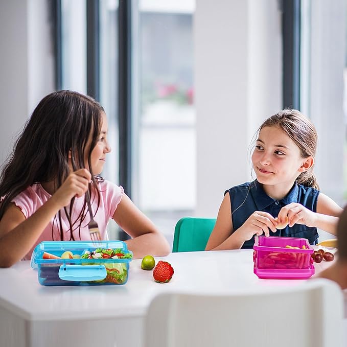 - KEEP YOUR FOOD SEPARATE - This 4 pack of plastic snack containers with lids and 2 compartments will keep your and snacks organized. Perfect for kids' lunch boxes, travel, or daycare, they are reusable for easy storage,and perfect for meal prep and travel.