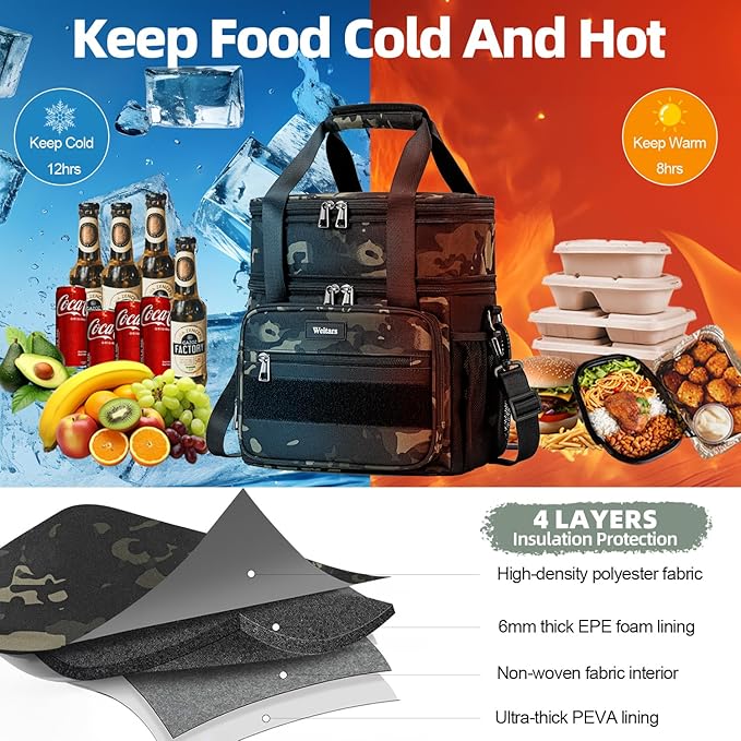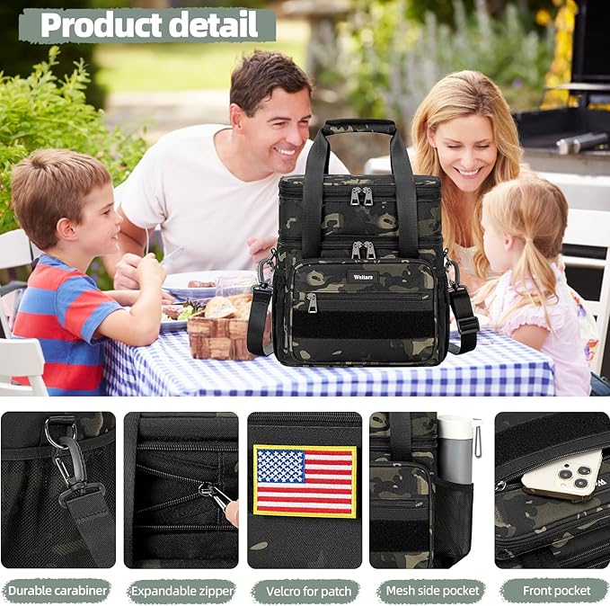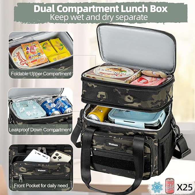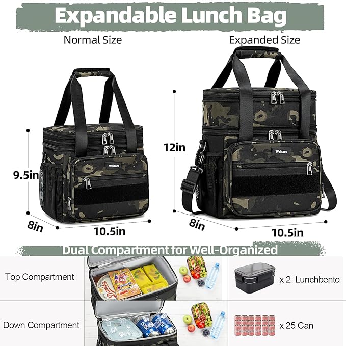 Weitars Tactical Lunch Box, Large Expandable Double Decker Lunch Box for Men,Insulated Lunch Bag for Women Durable Waterproof Leakproof Lunch Cooler Bag for Adults Work Outdoor Picnic Camping