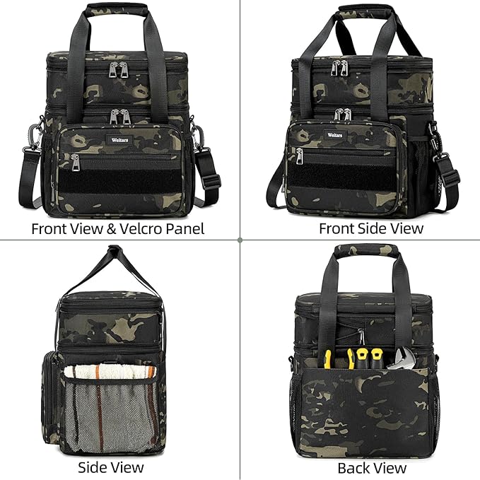 - Tactical Style & Multi-Use - Tactical lunch bag has large Velcro patch on the front allows for personalization, lunch cooler has 5 versatile side pockets are designed for conveniently storing bottles, coffee, portable chargers, and other essentials
