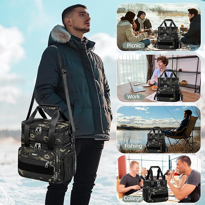 - Two Carry Options & Multiple Occasions - Insulated lunch box for men women comes with a reinforced handle for hand-carrying and a removable, adjustable shoulder strap. It's perfect for keeping food fresh during picnics, hiking, camping, gym sessions, work, beach outings, and fishing trips