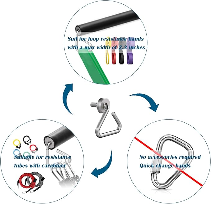 - [Perfect Applicability] - No additional accessories are required. Easy to connect loop resistance bands(max width: 2.0in) and other bands with carabiners. Convenient and quick to change weight.