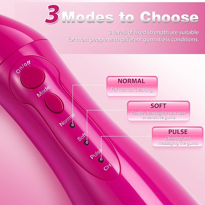 - Professional Equipment — From its waterproof and cordless design, to the 3 modes (normal, soft, pulse) to suit your preference and sensitivities. Please choose Soft mode at the first use. The Tovendor electric water flosser is perfect for the family, both at home and on your travels