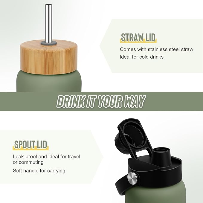 - DUAL LID VERSATILITY AND CUP HOLDER DESIGN: Our motivational glass water bottle comes with both a spout lid and a straw lid. Whether you need it as a stylish tumbler or a leak-proof cute clear water bottle, our product is designed to meet your needs on various occasions, and it conveniently fits in cup holders.