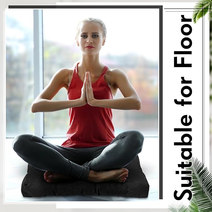 Jerify Floor Pillow Cushions 22 x 22 Inch Round Square Large Meditation Floor Pillow for Classroom Adult Meditation Picnic Party Cushion for Seating Gift Christmas(Square,Black,4 Pcs)